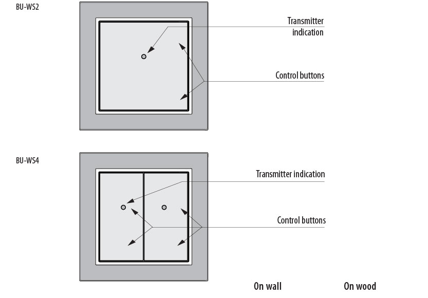 - Rf oddajnik, brezžično zidno tipkalo Bu-WS2, BU-WS4